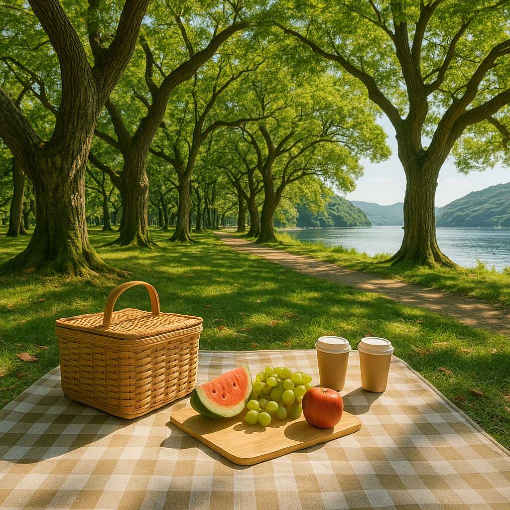 카페 타임 이후, 차로 5분 거리에 위치한 물건방조어부림은 자연 피크닉을 즐기기 좋은 장소입니다