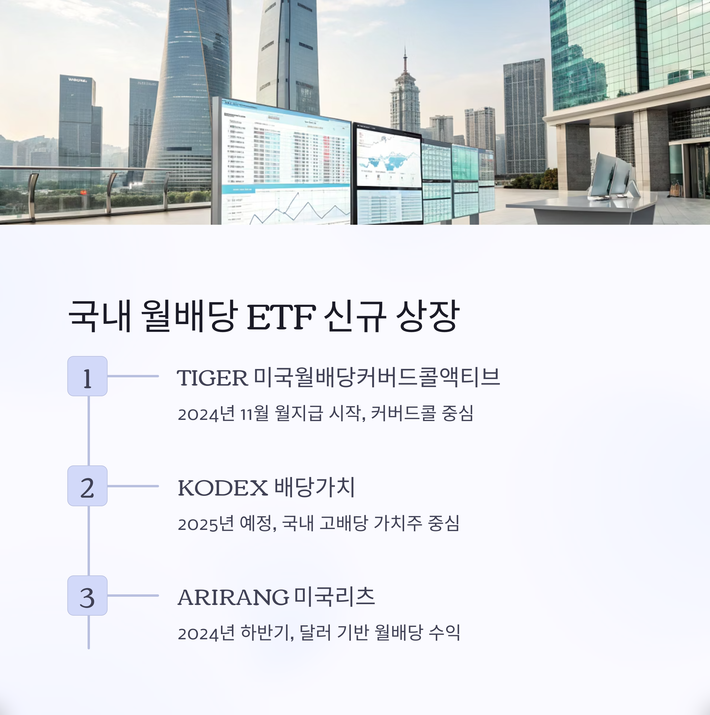 | TIGER 미국월배당커버드콜액티브 | 커버드콜 중심 | 2024년 11월 | 월지급 국내 ETF 대표 |