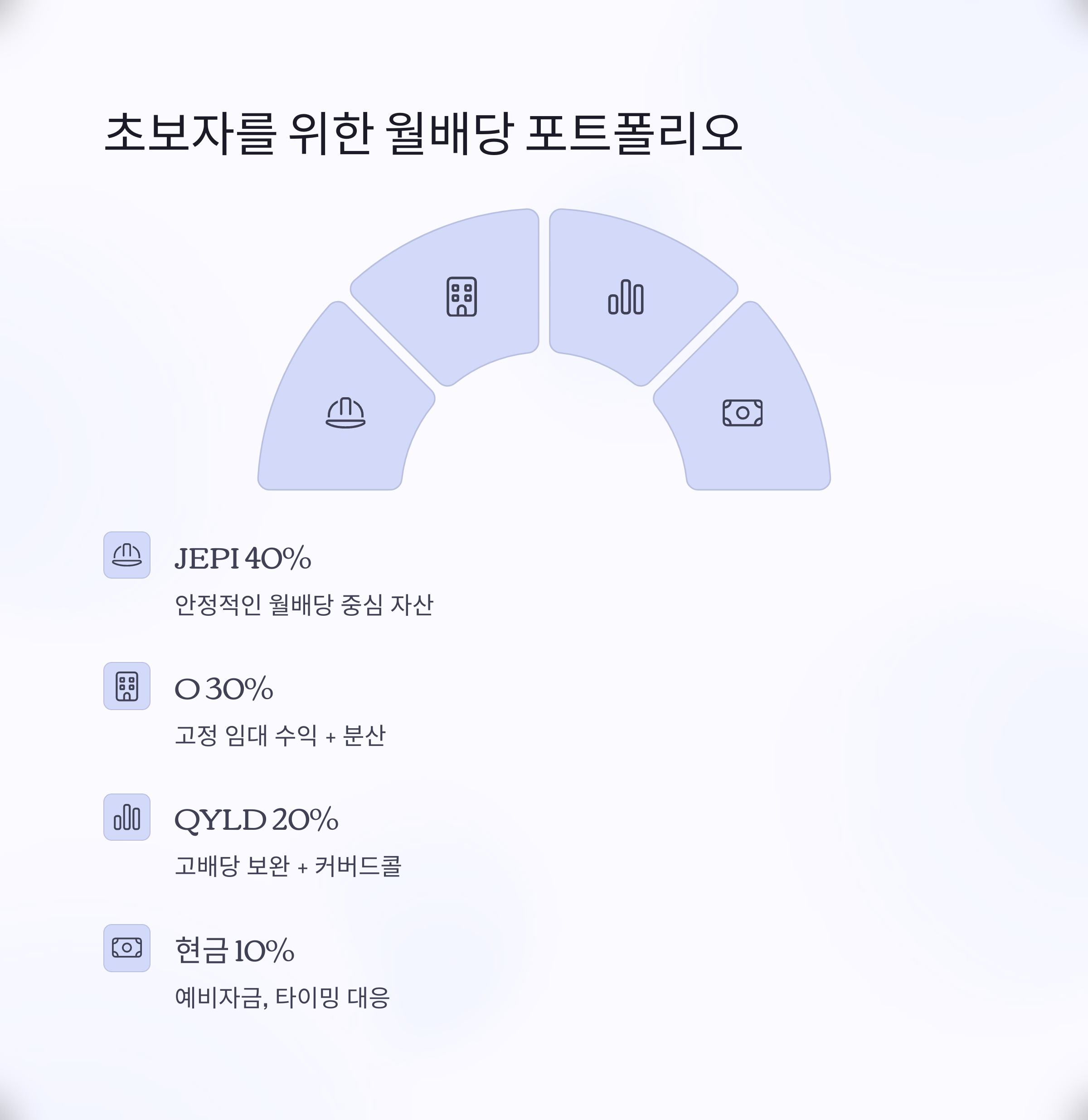 | 40% | JEPI | 안정적인 월배당 중심 자산 |