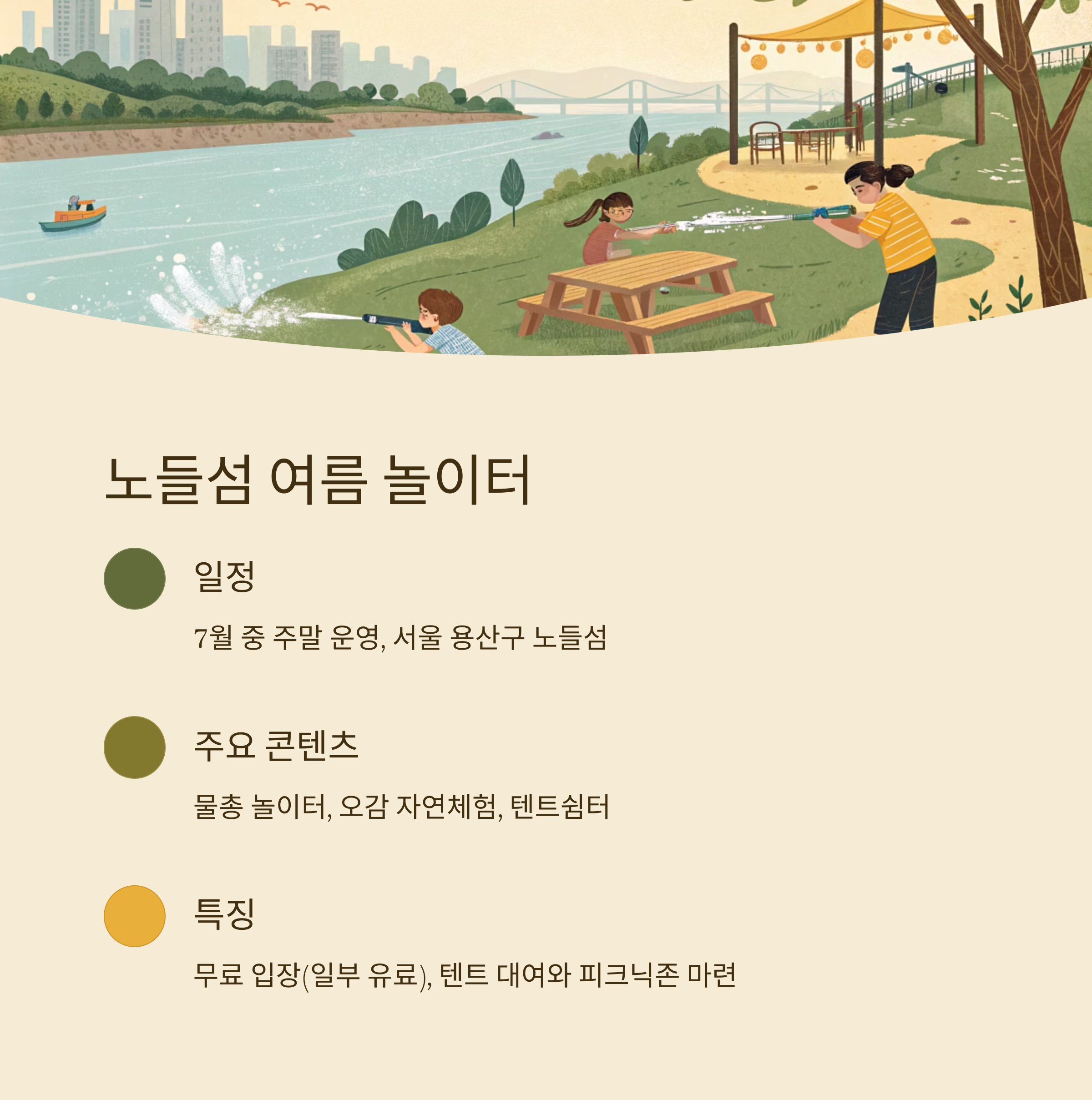 | 7월 주말 | 노들섬 놀이터 | 노들섬 | 자연놀이, 물총 |