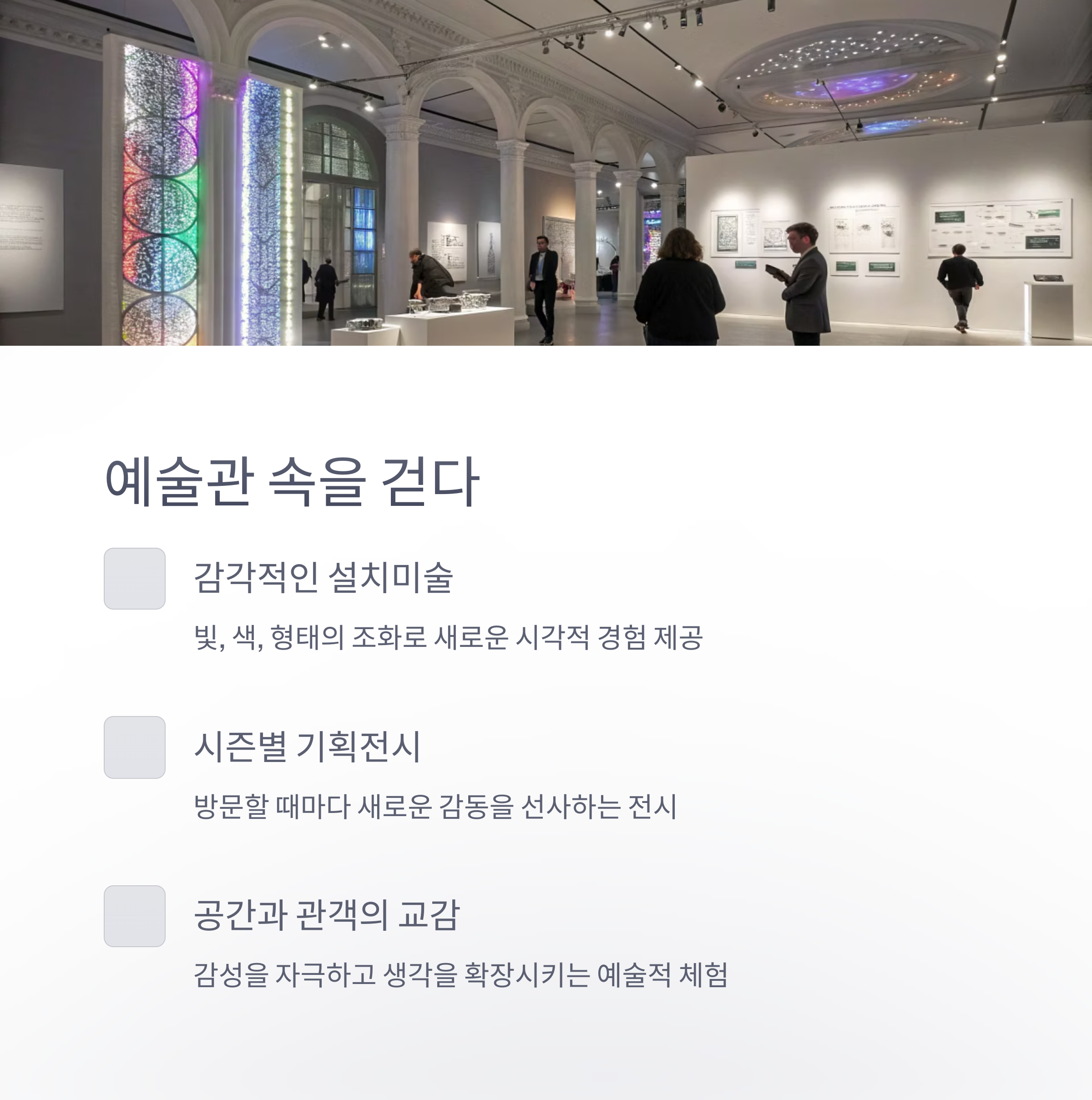 | 감성 전시 | 매번 새로운 테마로 기획되는 현대 설치미술 전시 |