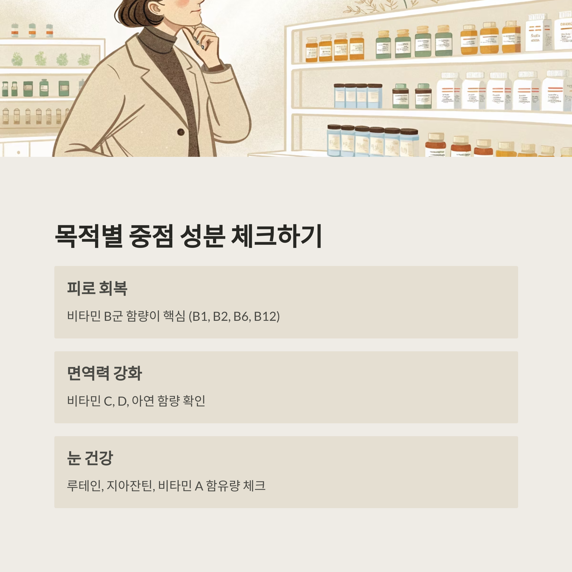 • 피로 회복 중심인지, 면역인지, 눈 건강인지 목적 확인
