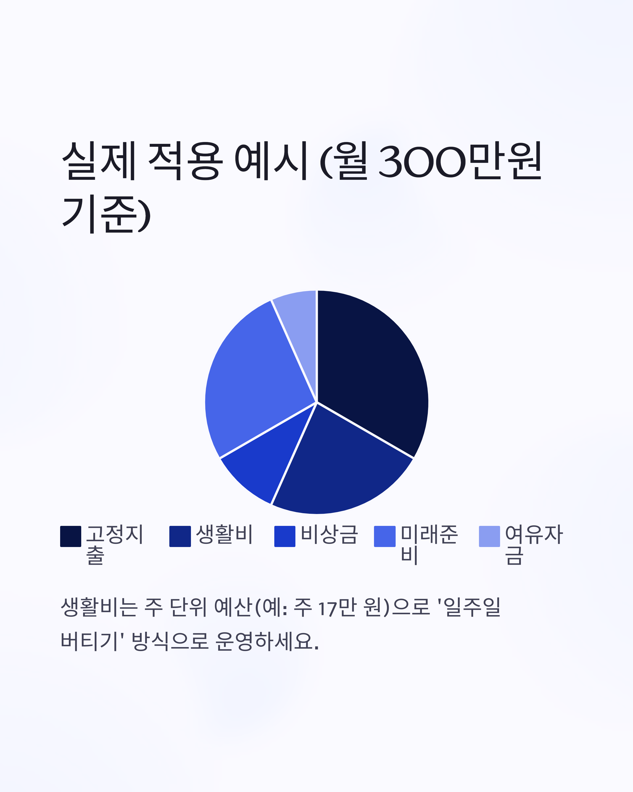 | 비상금통장 | 10% | 긴급 상황 대비용, 월 50만 원 이상 목표 |