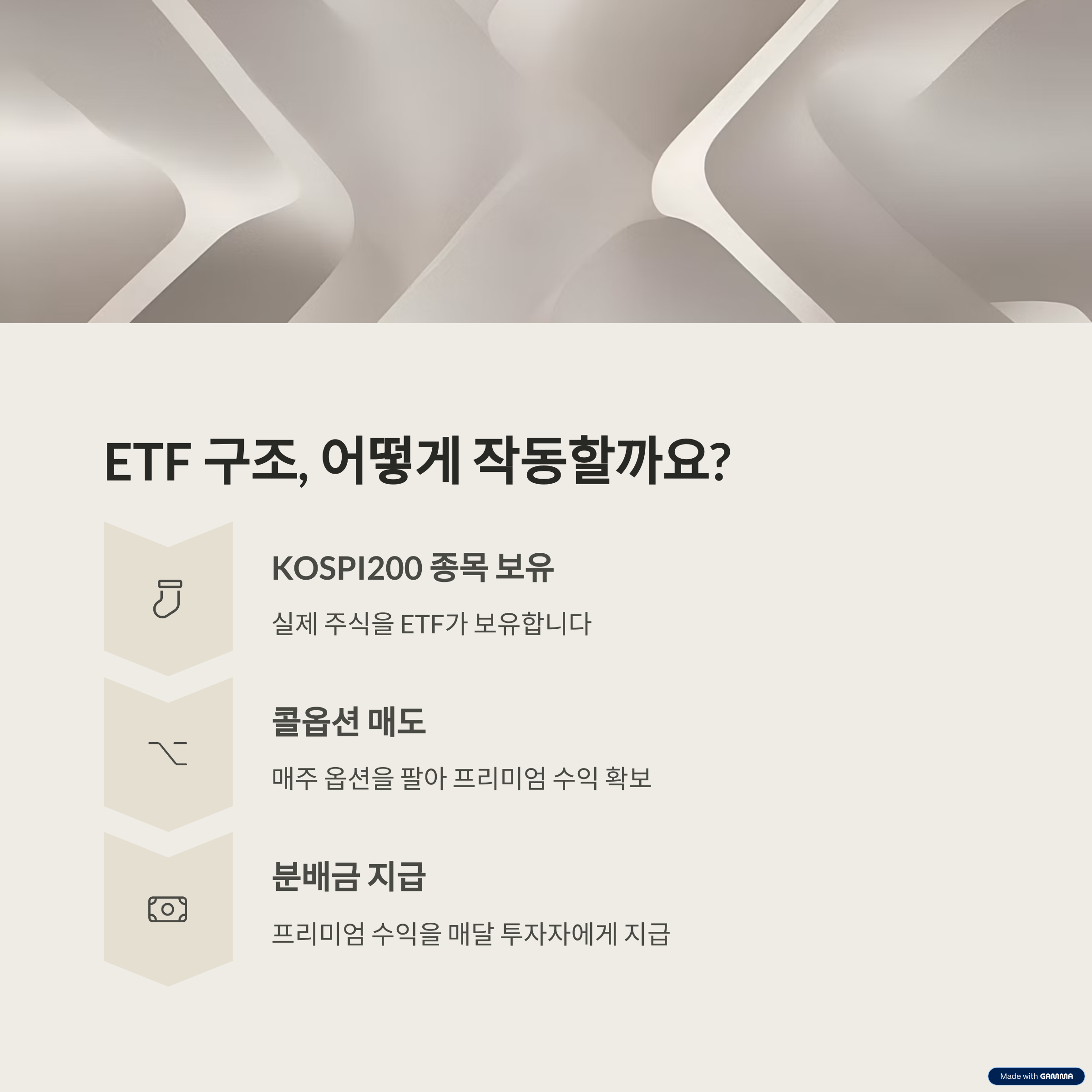 KOSPI200 지수 구성 종목을 실제로 보유하면서, 해당 지수의 콜옵션을 매도해 프리미엄을 얻는 구조입니다