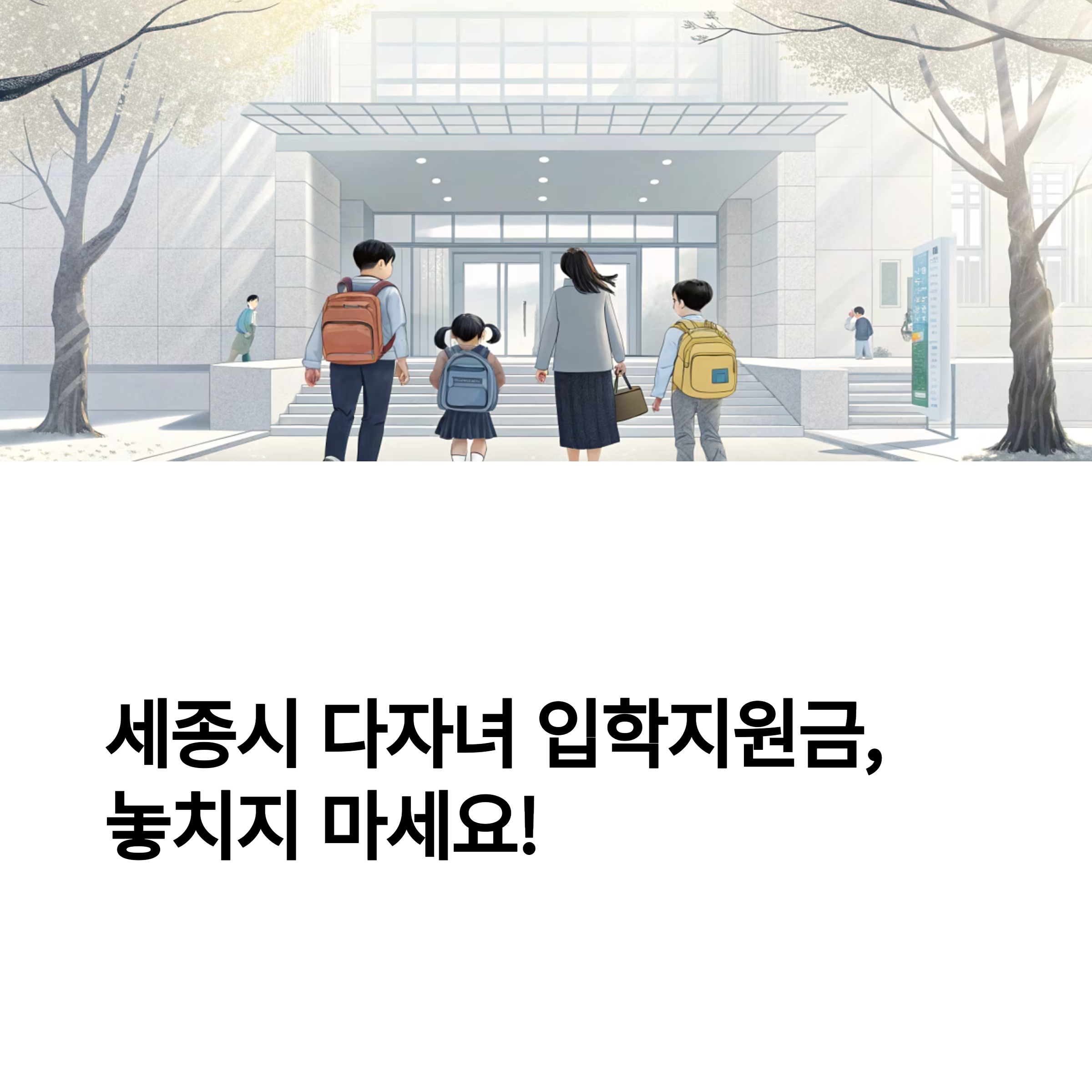 세종시의 다자녀 입학지원금 제도는 교육비 부담을 덜고, 아이의 새로운 출발을 응원하는 든든한 제도입니다. 신청 기간과 조건을 꼼꼼히 확인하시고, 필요한 서류를 빠짐없이 준비해 꼭 혜택을 받아보시기 바랍니다.