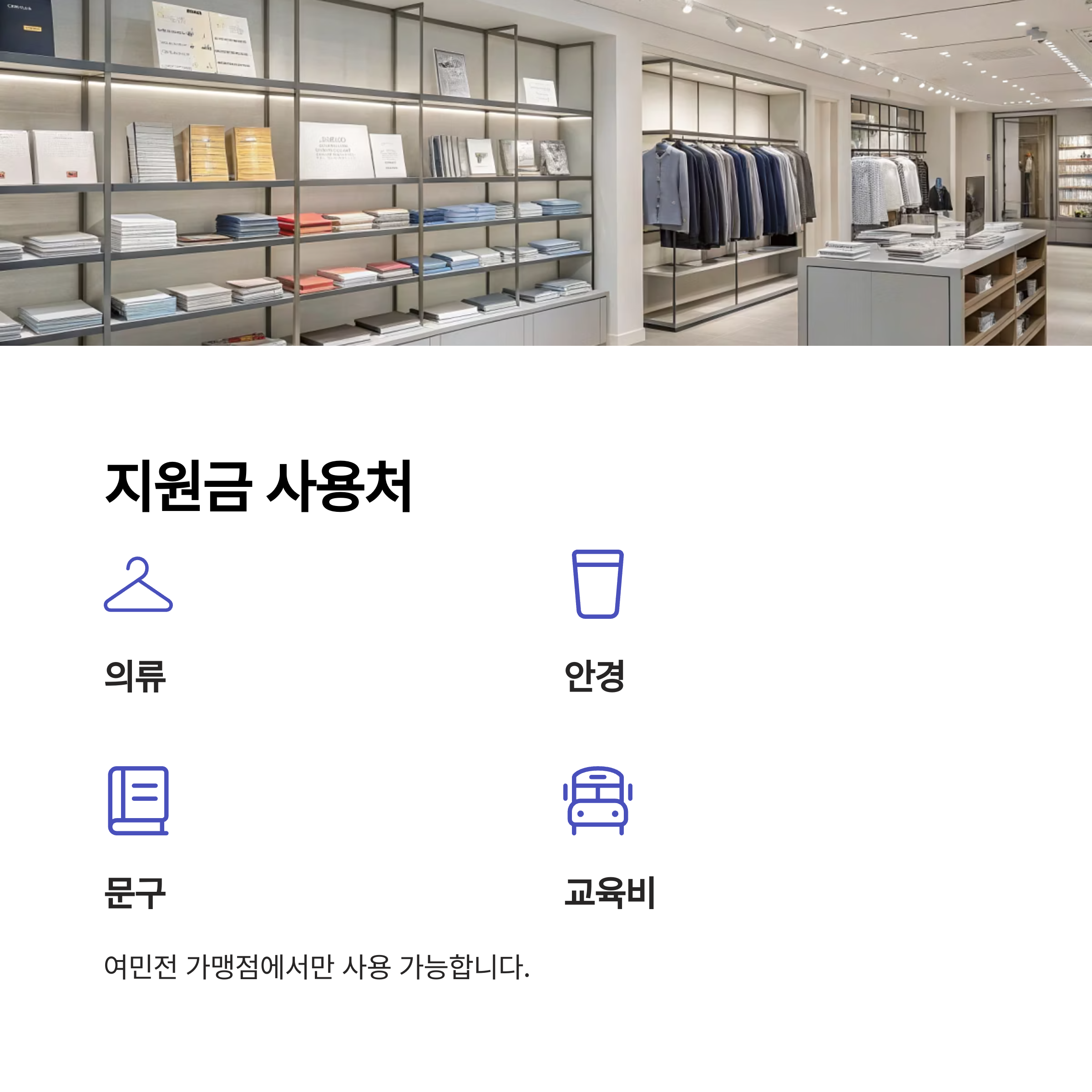 사용처 의류, 잡화, 안경, 교육 영역 등으로 사용 제한