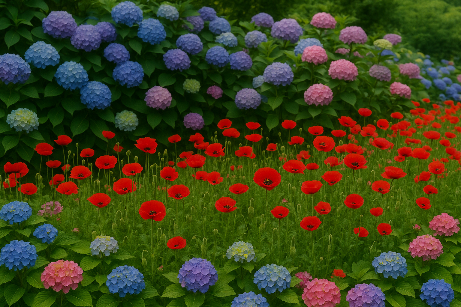 수국과 양귀비가 피어나는 길 – 꽃길 속을 걷다